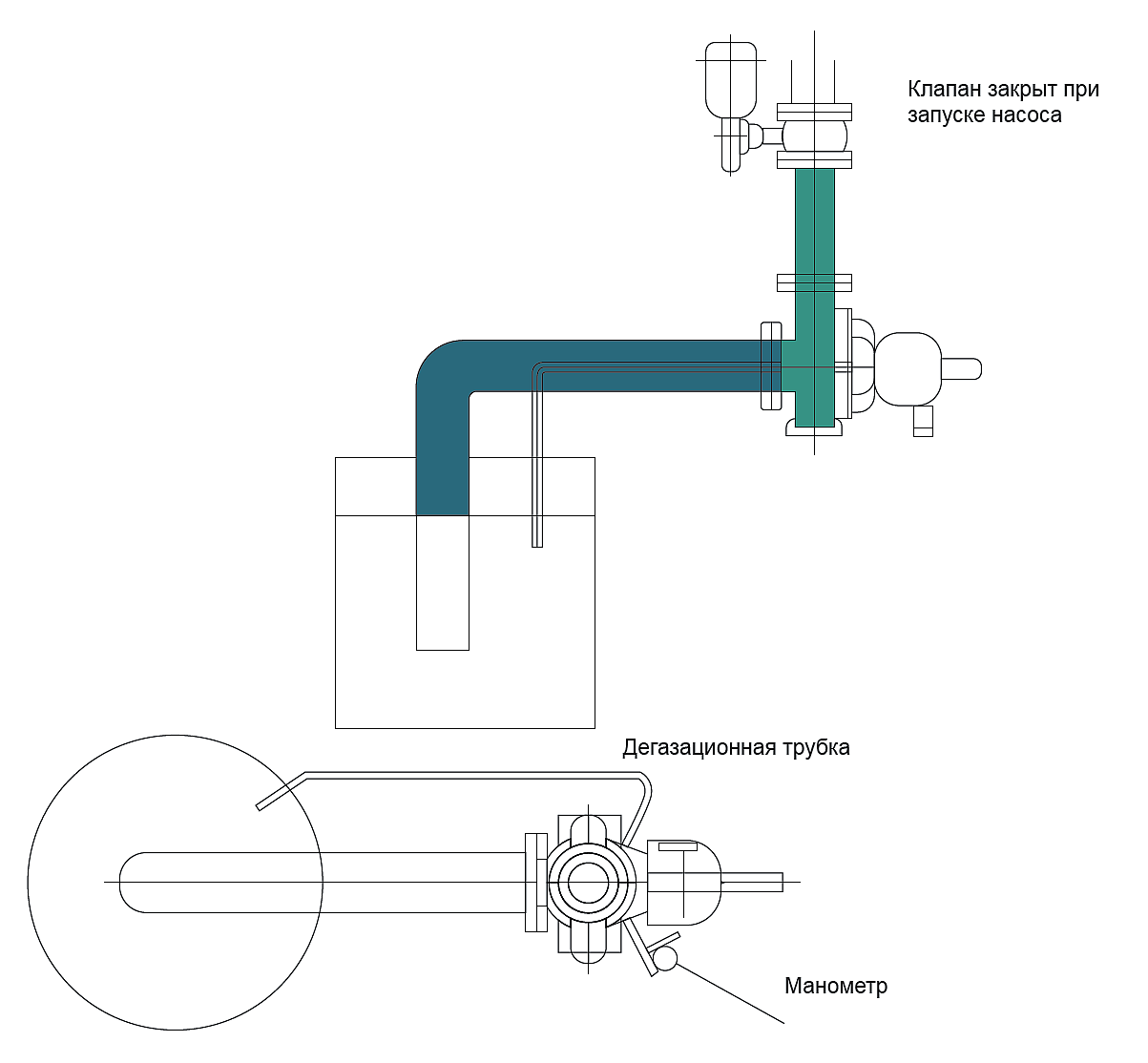 Закрепленный напорный парубок позволяет легко разбирать основные части насоса